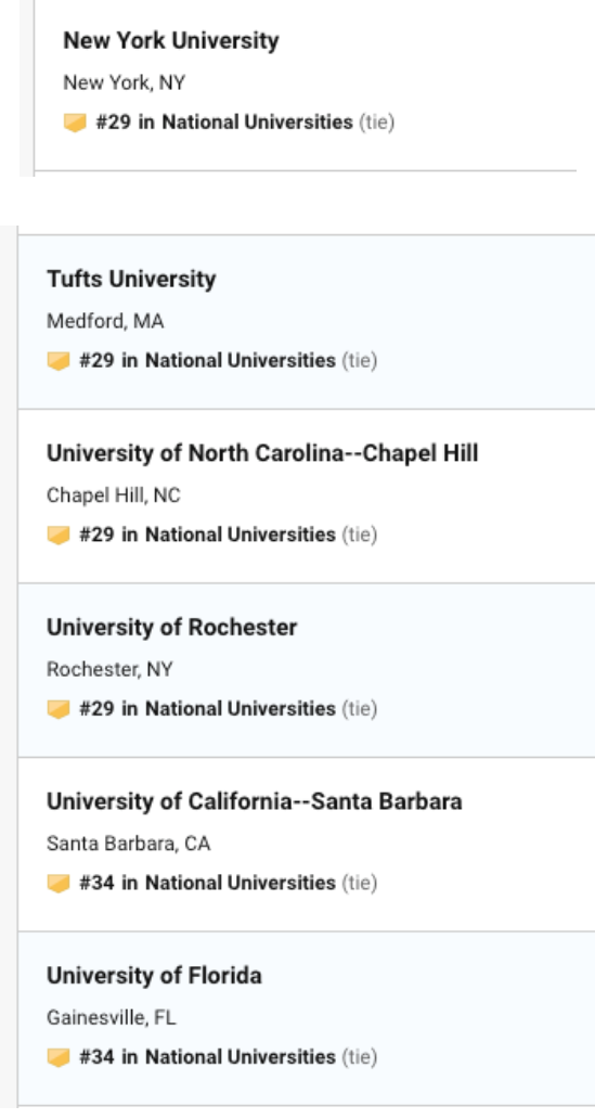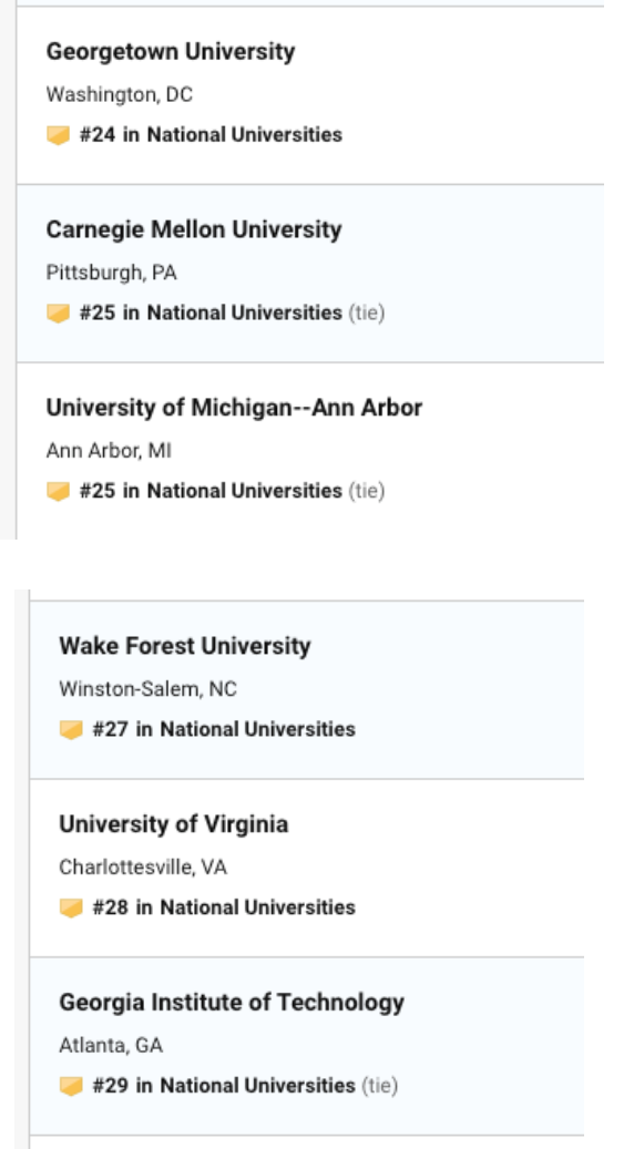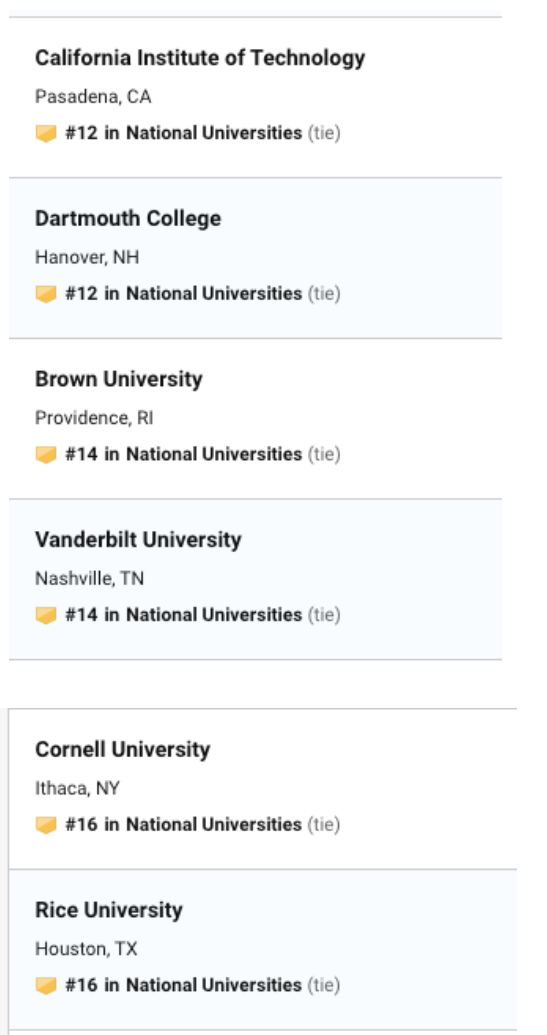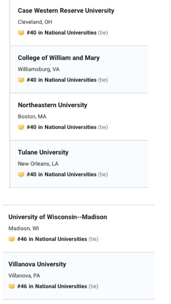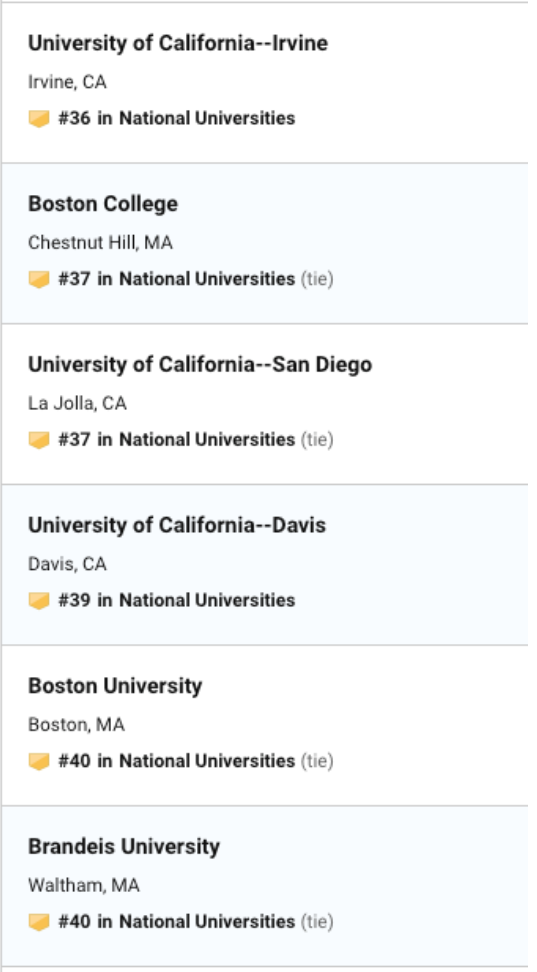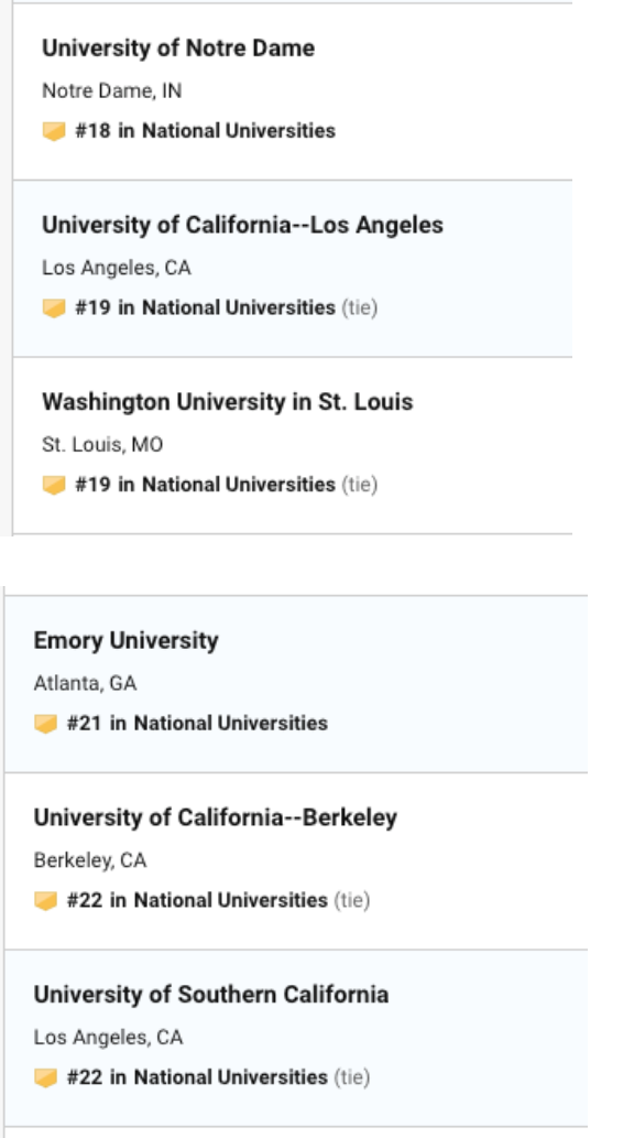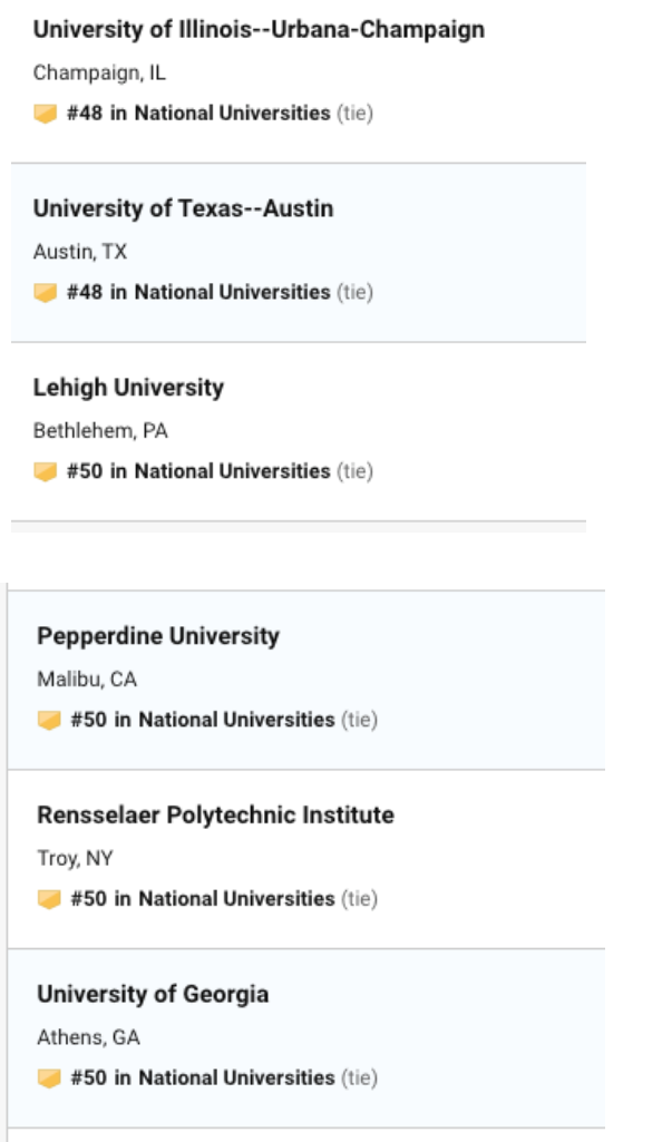 今日USNEWS 公布了最新的2020年美国大学排名,今年的排名可谓惊喜多多,惊讶多多。乔治亚理工,罗切斯特挺进前30,加州整体排名上升。 威廉玛丽,伊利诺伊大学香槟分校,里海大学,伦斯勒理工大学排名下降,圣克拉拉大学挺进前50,佛罗里达州立大学上升到57,此外前100的学校还出现了之前没出现过的学校,下面就给大家奉上最新2020年USNEWS 前50 排名。