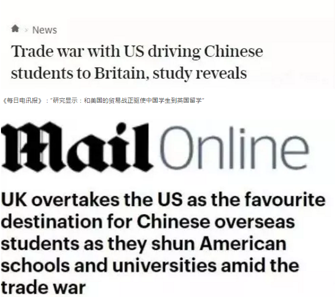 《每日邮报》:“英国取代美国成为中国留学生的最佳目的地,因为在贸易战期间他们避开美国学校与大学”