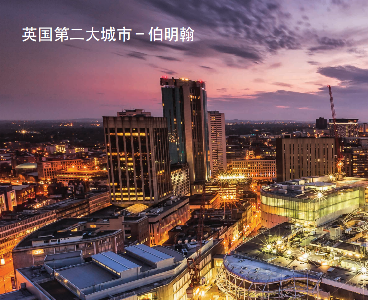 伯明翰是仅次于伦敦的英国第二大城市,人口超过百万,是除了伦敦以外全英最大的金融服务和创意产业中心 。