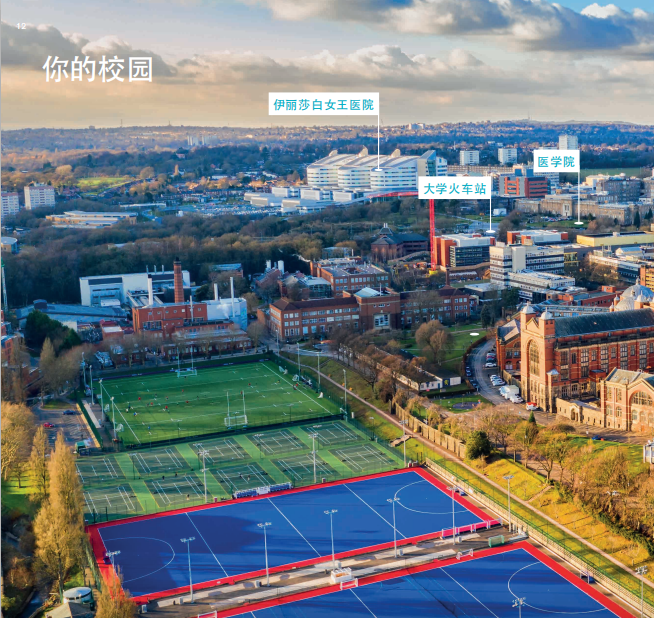 伯明翰大学是全英国唯一在校园里有火车站的大学。在校园里坐上火车,只需7分钟就可到达伯明翰市中心,30分钟就可以到达伯明翰国际机场。