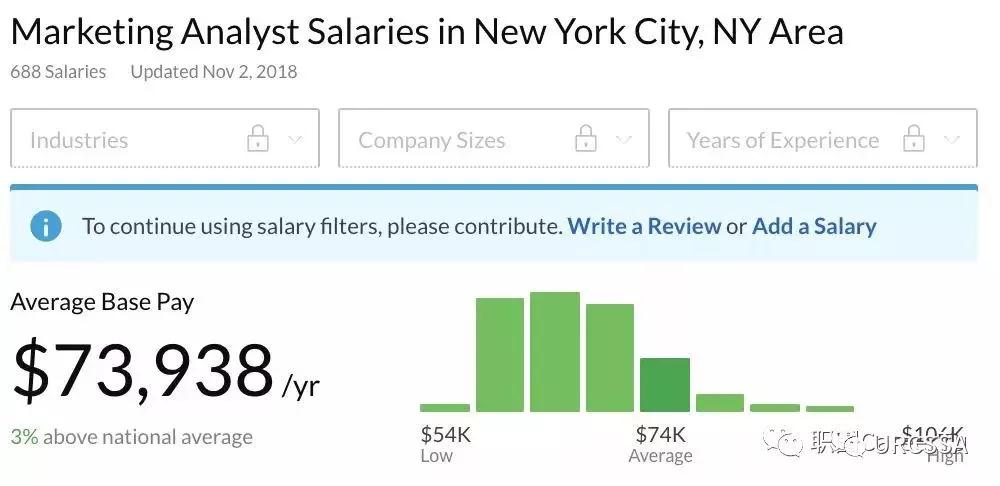 根据Glassoor上面的数据统计,Marketing Analytics在纽约地区的平均薪资达到了$73000每年。