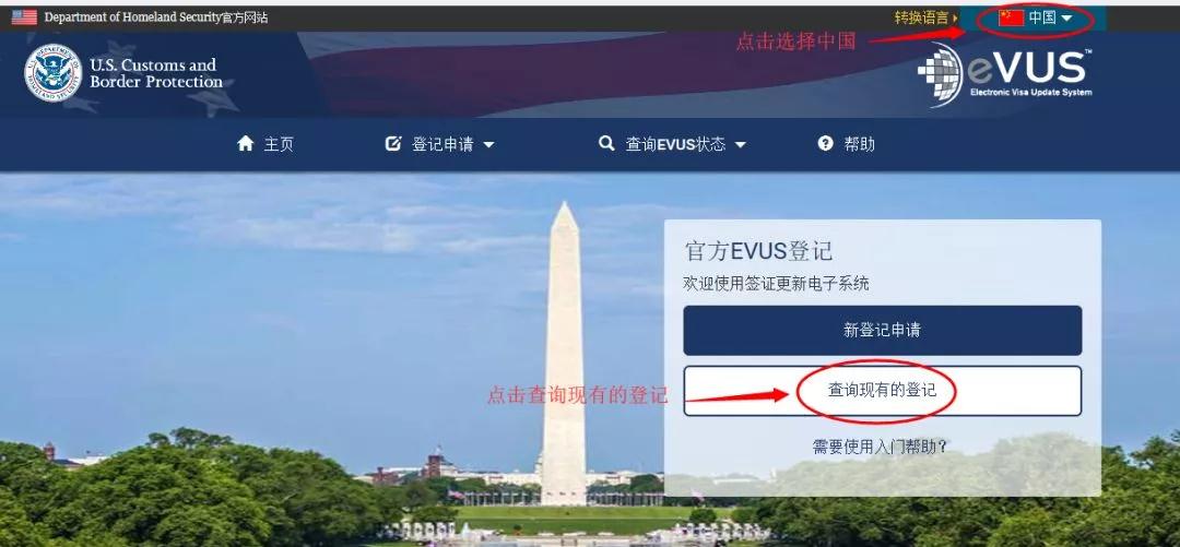 登陆 EUVS 登记网站: https://www.evus.gov/#/