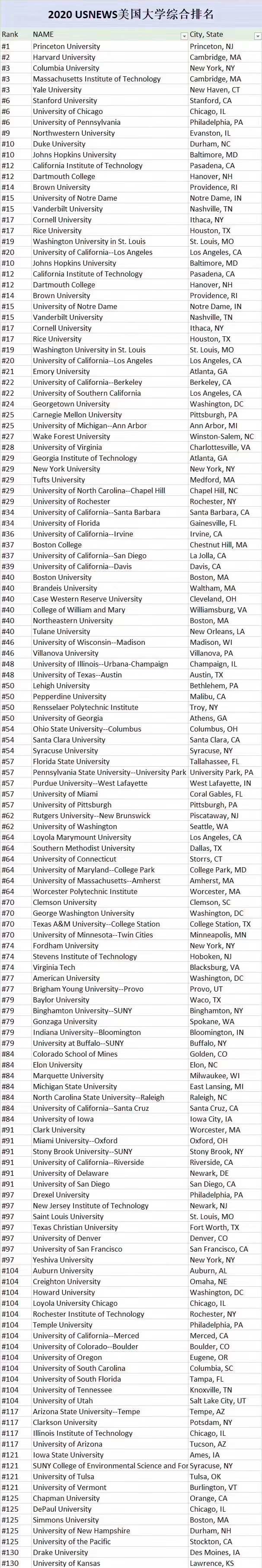 1️. Princeton, Havar 依旧高居前2,哥大,MIT,Yale并列第三,Stanfor,Chicago,Upenn紧随其后,西北重回前十,Duke,JHU并列第10