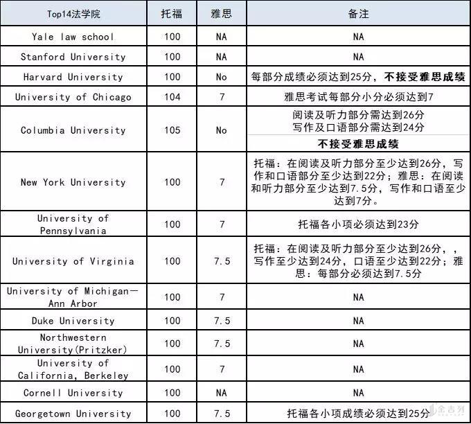 不一样,美国不同等级大学对托福分数要求不同,但几乎都有硬性指标。以美国Top14法学院为例