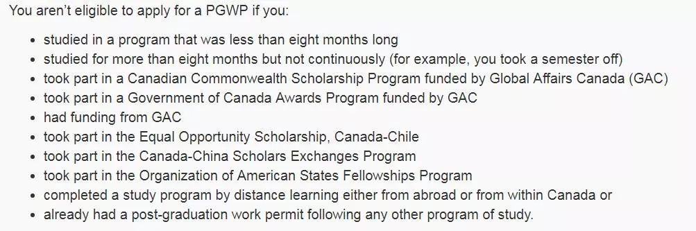 提前完成项目,就读的项目计划需要八个月或以上,但提早完成者可能符合申请PGWP条件。