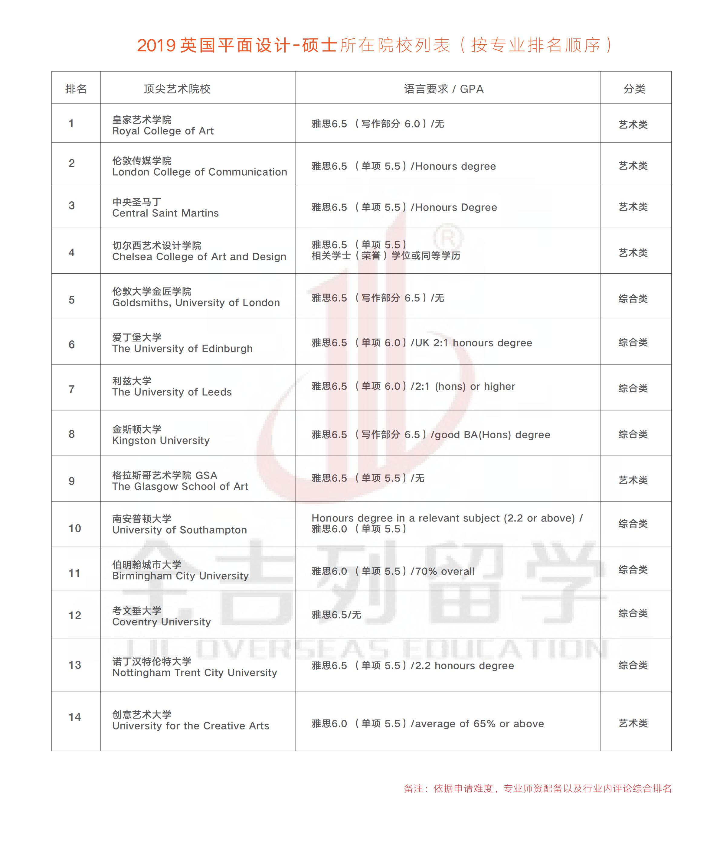 > 2019英国艺术类排名(十一)