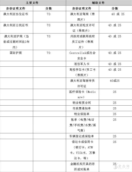 带照片的辅助身份文件可以被作为主要身份文件,但仅可以获得表格中相对应的积分数。