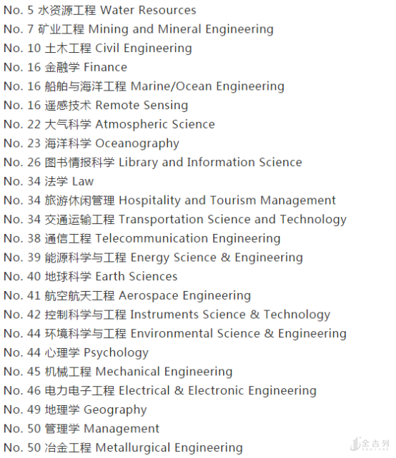 其中,我们的水资源工程排名最高,位列全球第5;其次是全球第7的 矿业工程 ,以及全球第10的 土木工程 。