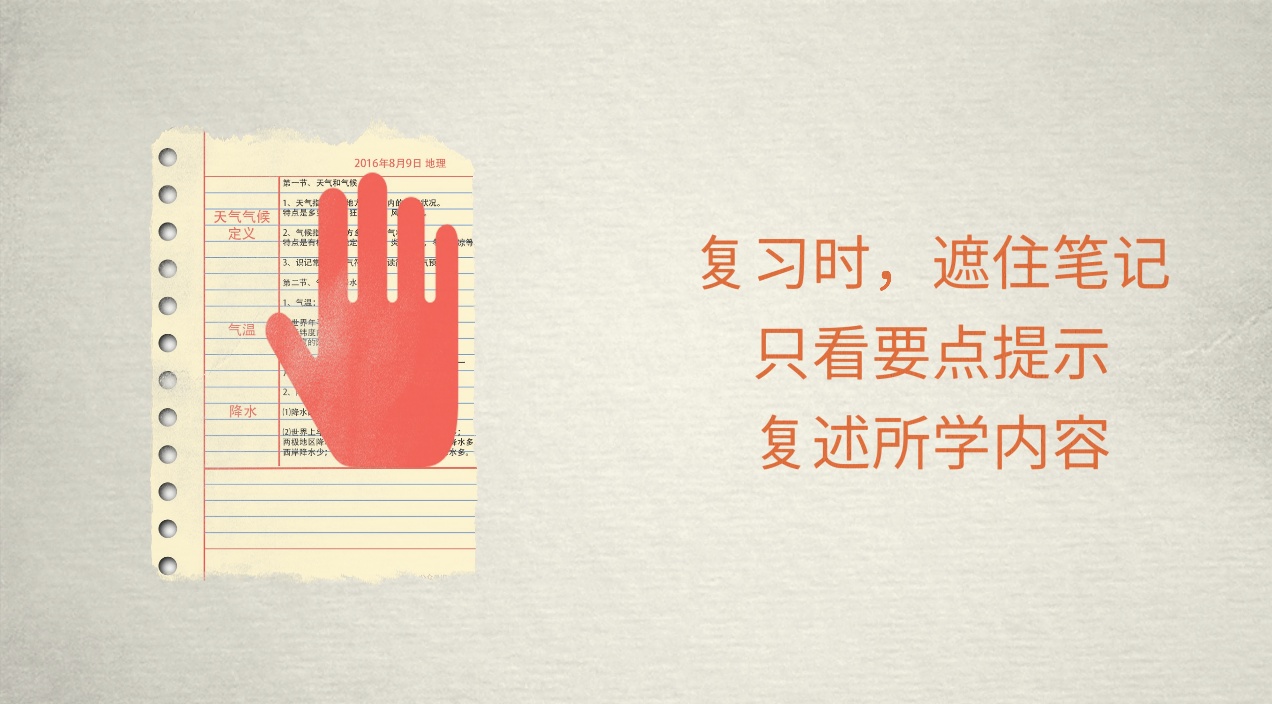 把“笔记”部分遮住,只用“线索”中的概括提示,尽量完满地叙述课堂上讲过的内容。