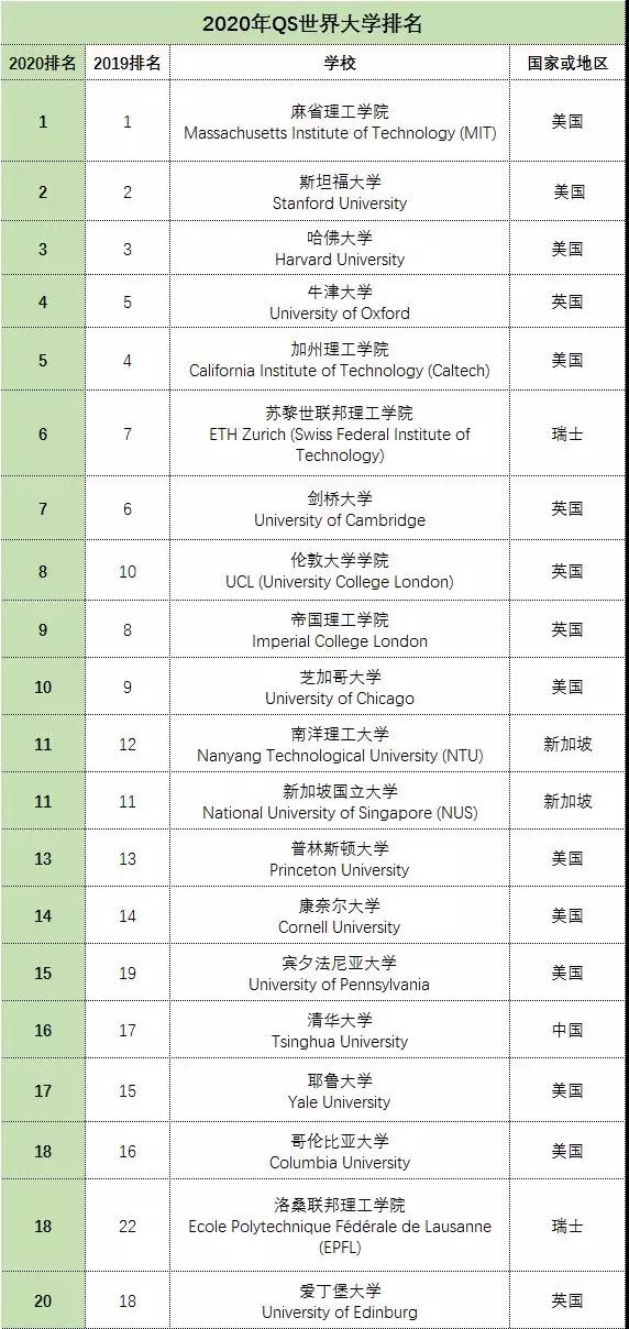 最新的2020QS世界大学排名发布,麻省理工第8年蝉联第一,斯坦福、哈佛随后。中国大陆高校今年表现不俗,清华、北大两所顶尖大学在此次排名中取得了史上最高名次分别排名全球大学第16位、第22位。