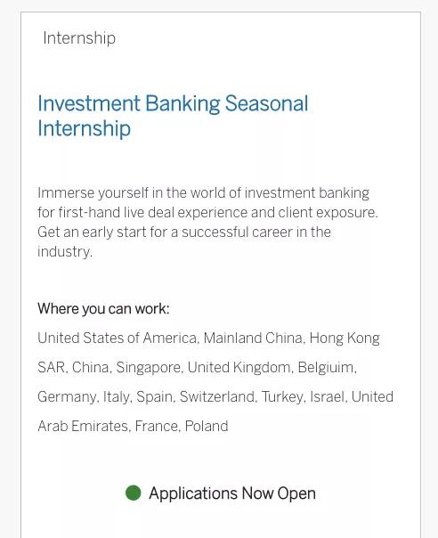 我们无数次说过暑期实习对于想要进华尔街投行留学生的重要性。在华尔街投行, 通过实习转正的概率要远远大于直接参加秋招! 即使最终没有成功转正,一份具有含金量的投行实习也能成为秋招网申其他投行的敲门砖。