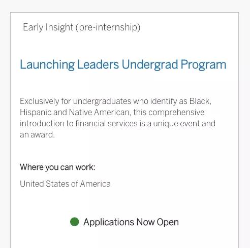 主要针对于大一大二大三的在校生,这些 Programs 会包括一些活动和奖学金计划,旨在帮助入选者了解行业,与公司员工建立联系,体验成为公司团队成员的意义。