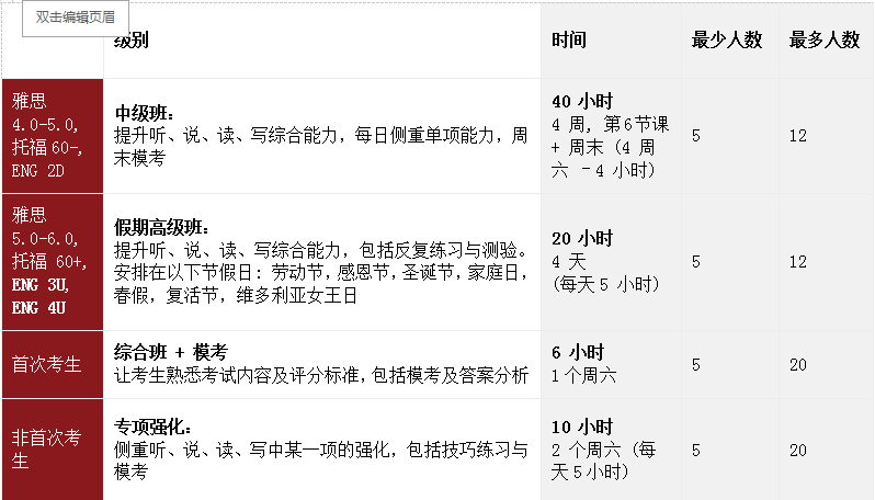 4、大学预科课程:安大略省大学预科课程(12年级)是快速、稳步升入加拿大、美国、澳大利亚、新西兰、英国等国大学的最佳渠道。Form 5,O-level及Sec 4的在读生:1月或5月入读大学预科课程,最快6个月既可完成6门课程,直接晋升大学。高二在读生:8月入读大学预科课程,最快10个月既可完成8门课程,获得安大略省中学毕业证书(OSSD),直接晋升大学。