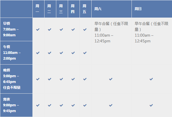 主校区三间餐厅供应午餐:与加拿大著名的Chartwells餐饮公司合作,为学生提供新鲜美味、营养均衡的膳食。每周26餐(最多)。
