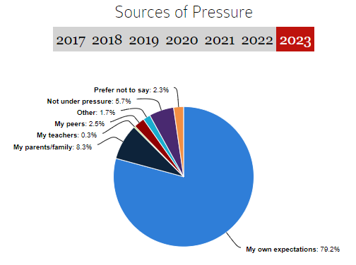 79.2%的受访者自我驱动力强,在高中时的 学业压力主要来自于自身的目标期望。