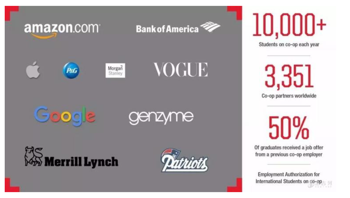 Co-op项目的合作企业不仅仅限于美国本土,而是 包含全世界2000多家公司 ,包括尼日利亚的软饮料生产公司、中国的电子公司,甚至南极研究站。 毕业生们在整个大波士顿地区的口碑杠杠滴,所以很多学生在波士顿地区找到合适的Co-op公司。