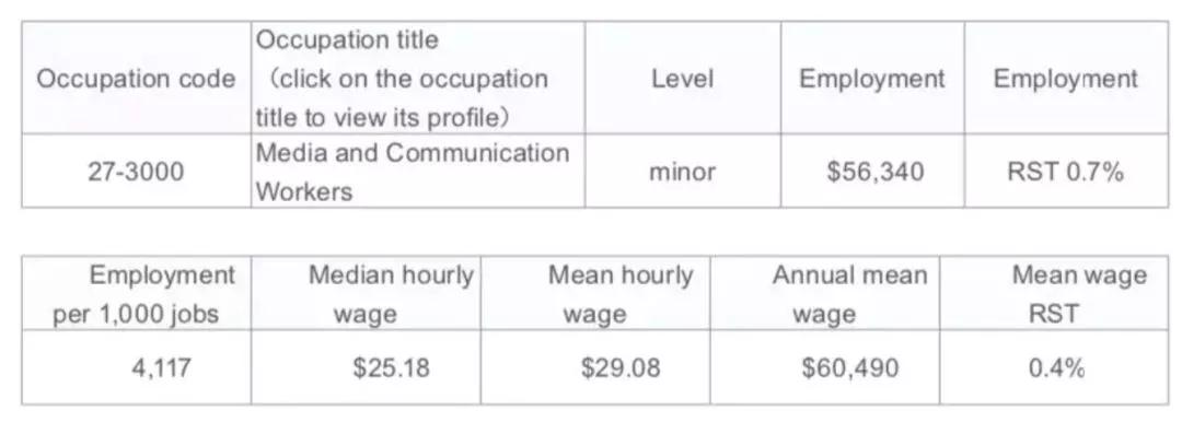 美国传媒业就业人士的平均年薪为$6.049万。而由于具体工作职责、所处行业以及地域的不同,薪资也会发生很大的变化。根据美国相关网站数据,与市场营销相关的传媒类职位平均薪资最高,一个从业3年左右的员工年薪可达$21万美元。