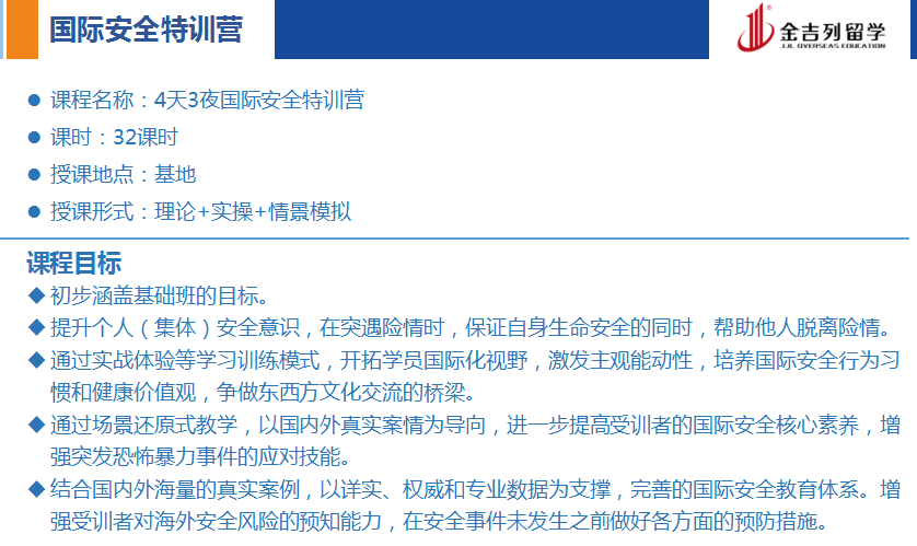 留学生在出国前,对海外社会的了解大多是建立在零碎的二手信息上。 很多时候,他们对自己身处的环境并没有正确判断,而且比较片面。 大多数情况下,刚到国外的留学生由于新鲜感,认知不到潜藏的风险,因此在出国前,接受专业的安全培训是非常必要的一项行前工作。