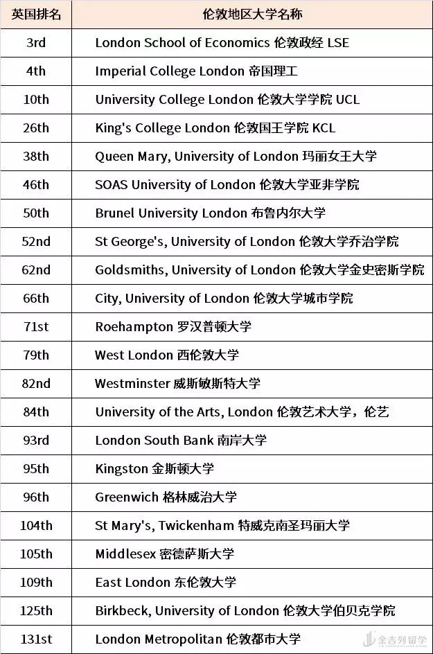 伦敦的大学“两极分化”非常严重,英国最有声望的G5院校,有3所在伦敦(不在伦敦的两所是牛津和剑桥。敦还有一些非综合类的大学,不参与上述排名。但这些大学在自己的专业领域都享有很高的声誉,如:伦敦商学院 Lonon Business School 、皇家音乐学院 Royal Acaemy of Music 、皇家艺术学院 Royal College of Art 等等。