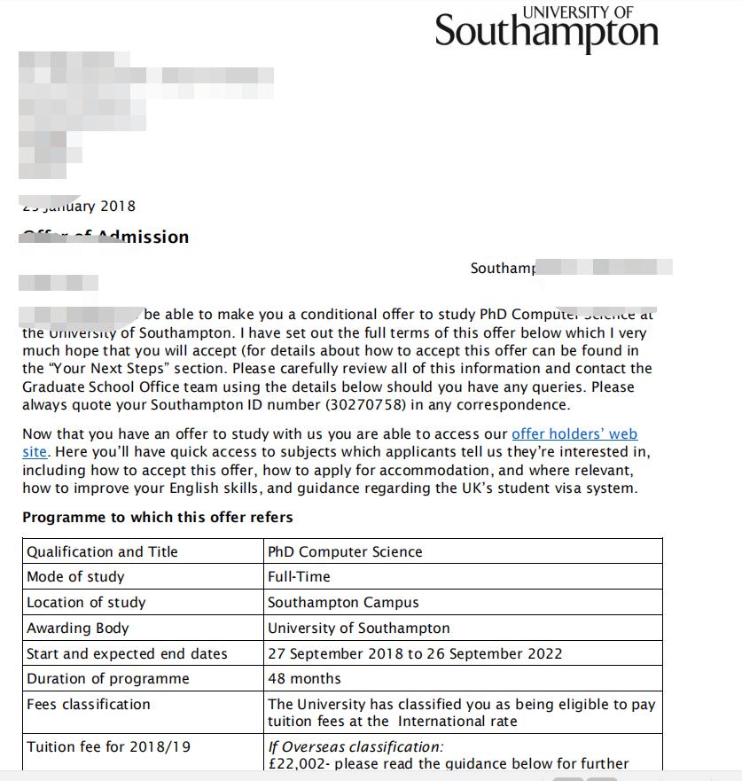 下面给同学们展示下,在老师这里办理英国博士申请拿到的offer案例。