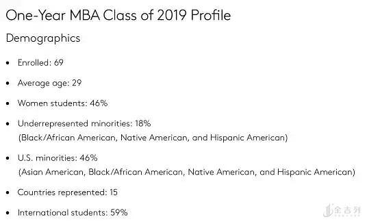 Johnson一年制MBA的class profile如下: