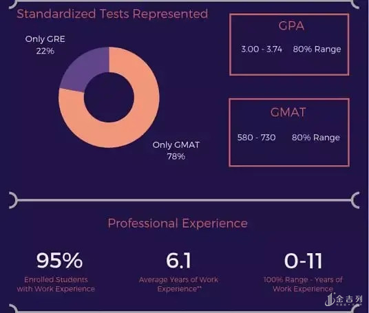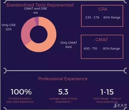 与Johnson两年制MBA相较起来在GMAT分数上的要求略低一些,而在国际学生的比例上也高出不少。