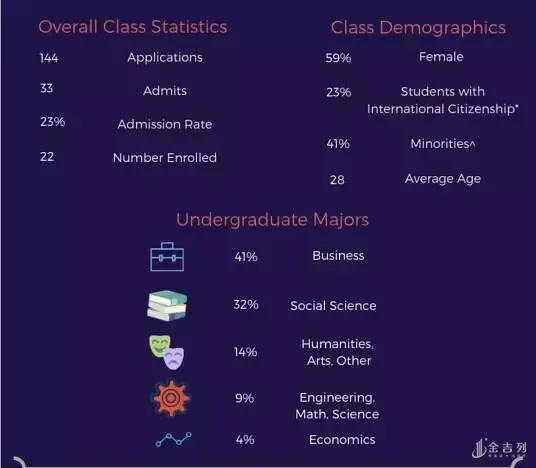 另外,比起Kellogg,Johnson一年期项目在招生上的限制也比较宽松一点,没有先修课程的限制,只要申请人有如CFA、CPA、PMP等证照,或是MA、MS、PhD、JD、MD等研究生以上高等学位的申请人都可以申请。