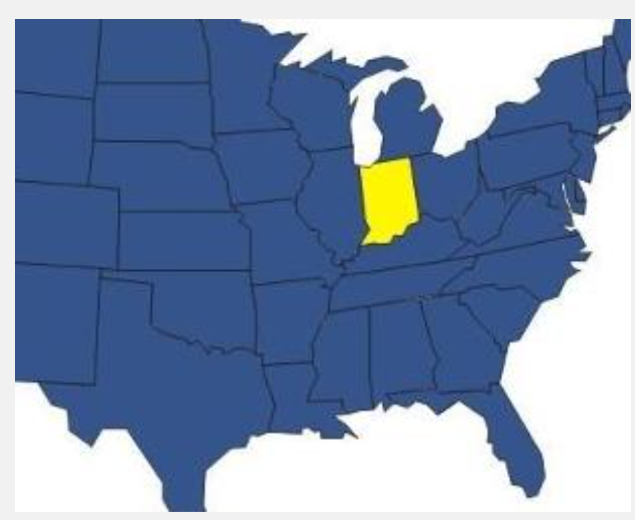 印第安纳州 (Iniana--IN) 是中北部偏东的一个州。西北濒密歇根湖,北接密歇根州,东界俄亥俄州,西邻伊利诺伊州。南隔俄亥俄河与肯塔基州相望。面积93993平方公里,在50州内列第38位。东西宽257公里,南北长451公里,呈长方形。首府印第安纳波利斯 (Inianapolis)。