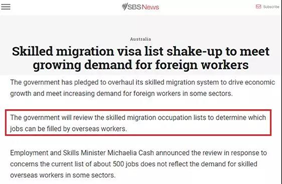 为什么这次的动静闹得这么大?澳洲就业部长 Michaelia Cash 给出了答案。她表示澳洲现有的 500 个技术移民职业清单,并没有完全反映出部分行业对于海外技术人员的需求,有一些真正紧缺的职业并没有出现在技术移民职业清单上。