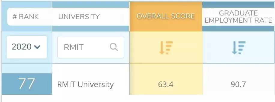 RMIT这次的表现也有所提升。表现最为突出的两项就是学生就业率(90.7%)以及雇主与学生的联系(86.3)。
