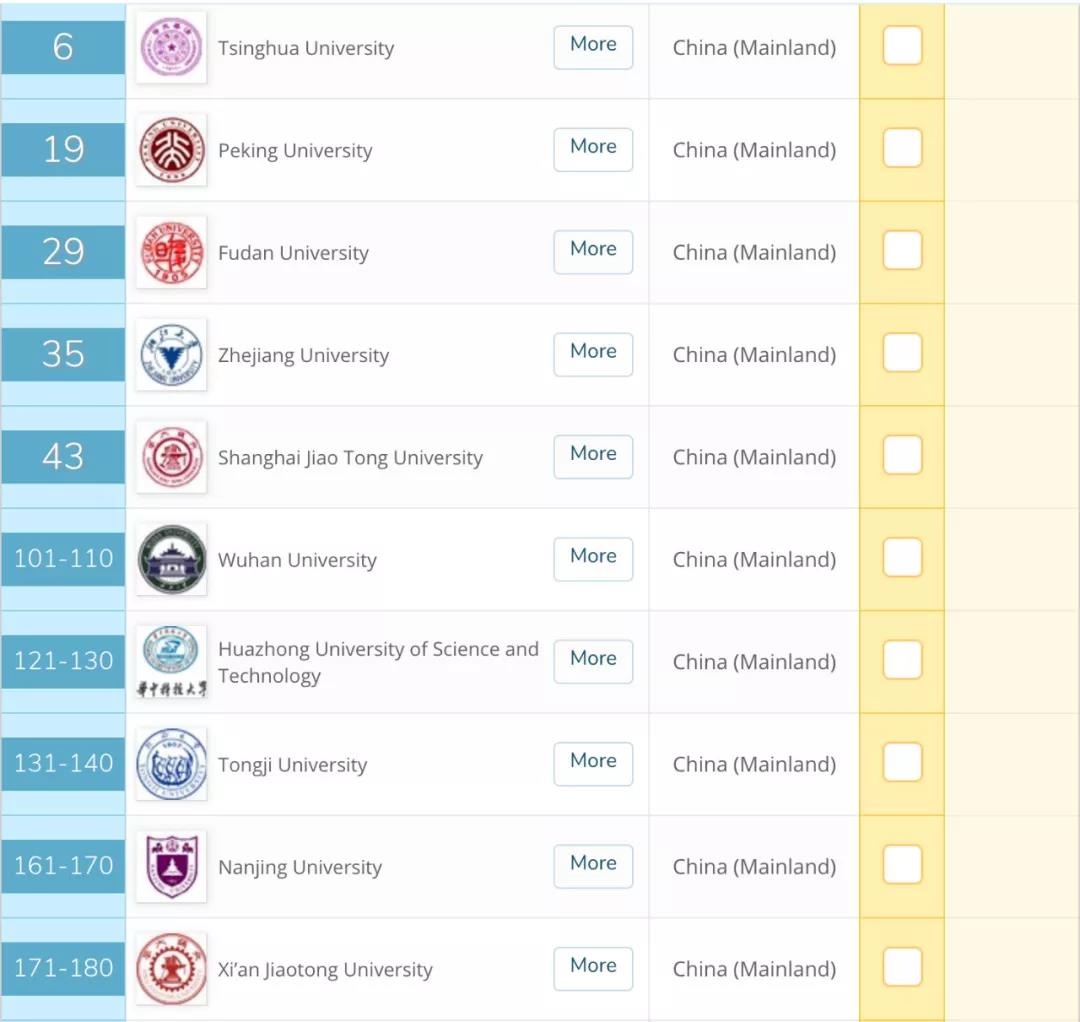 中国名校的排名较去年基本都有了一定的提升,最亮眼的当属清华大学,在前十的区间中再度进步了三名,排到了全球第六位。