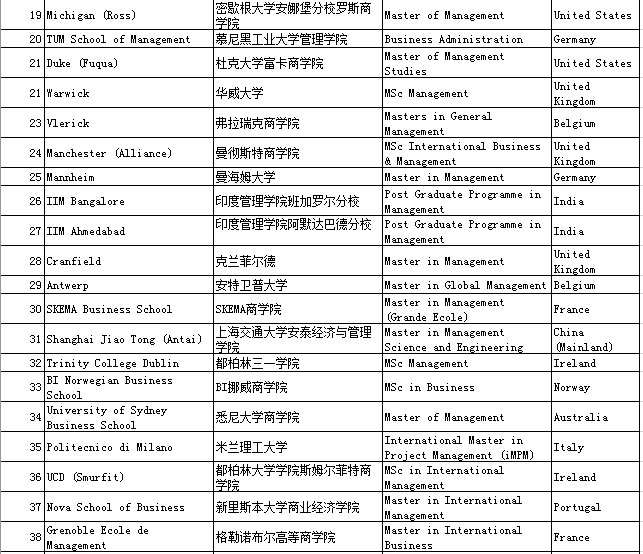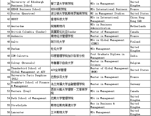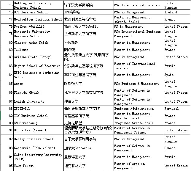 三、QS Business Masters Rankings:Management管理学