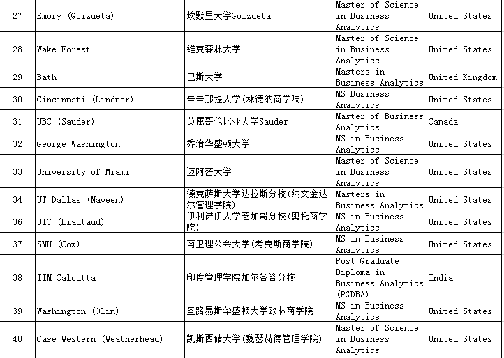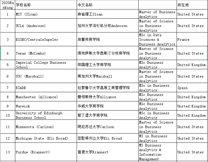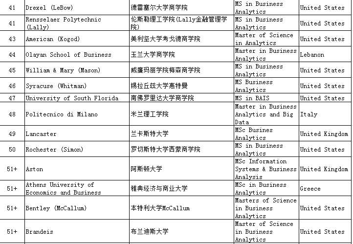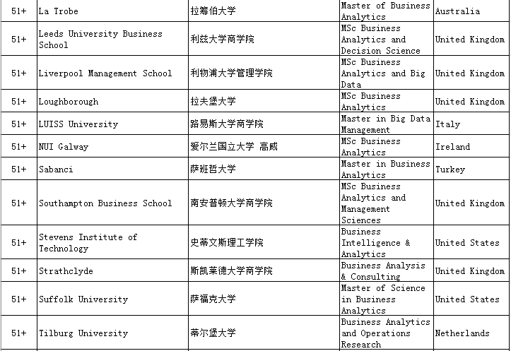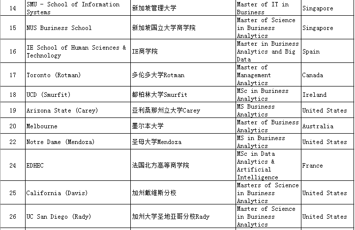 一、QS Business Masters Rankings:Business Analytics商业分析