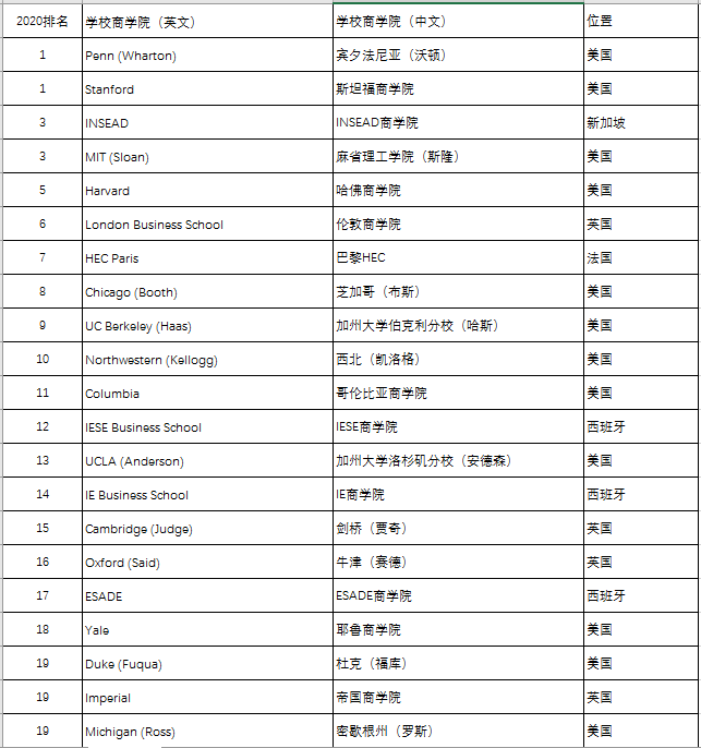近日,QS发布最新2020全球MBA和商科硕士排名,这个排名去年发布了第一版,今年是第二版,增加了不少数据,排名方式也有所优化!本次最新排名包括:MBA、管理学硕士、金融硕士、商业分析硕士、市场营销硕士五大热门硕士专业。排名分为两种:一种是商科硕士排名,一种是MBA排名。