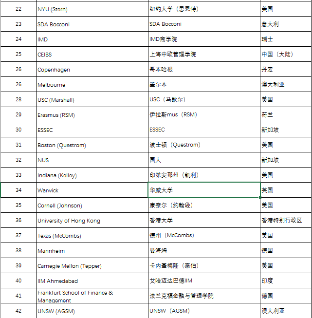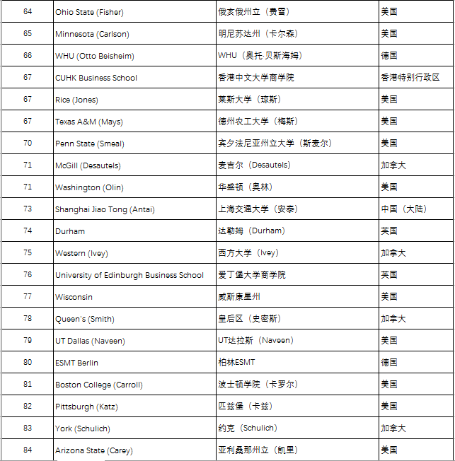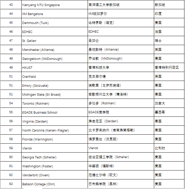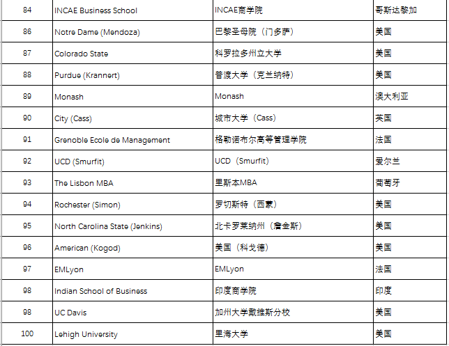 五、QS Business Masters Rankings:MBA工商管理
