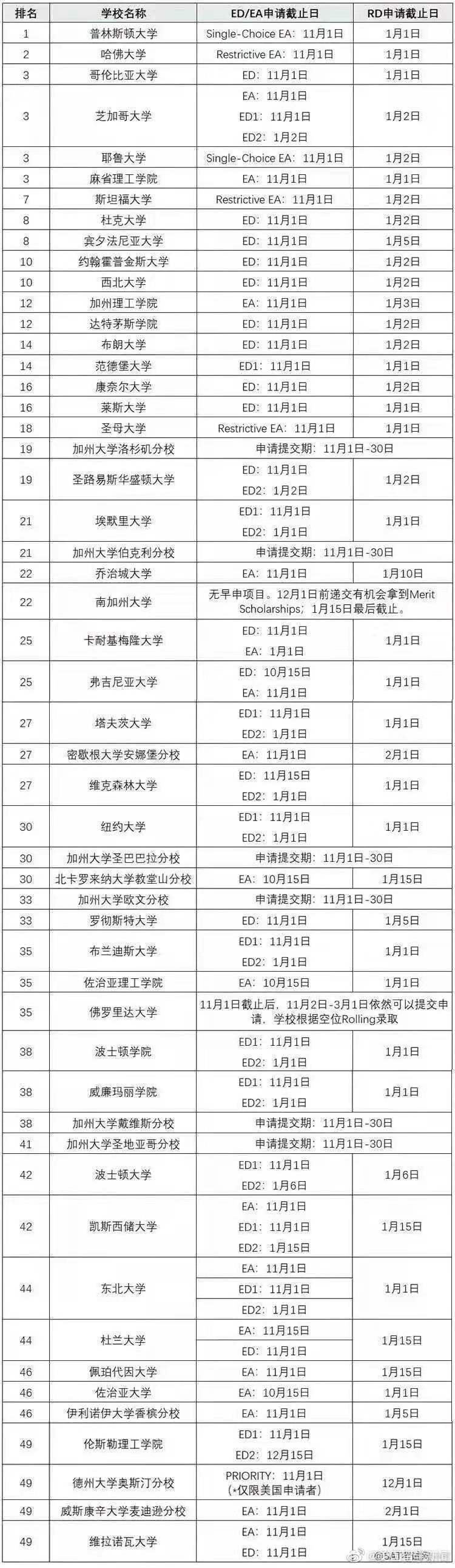 关于直录:不难看出,提前批次,EA/ED,大多数需要在11.1日前递交完申请,常规申请需要在1.15日前递交完申请。考虑到考试出分以及成绩寄送的时间,那么最后一次考试需要在申请前至少半个月完成。分数要求,Top30 托福95+; TOP60托福最低79+ ; 除了托福这座大山外,还有另一座大山压在申请者心头,那就是SAT。 SAT最低要求1200+,竞争力1480+。