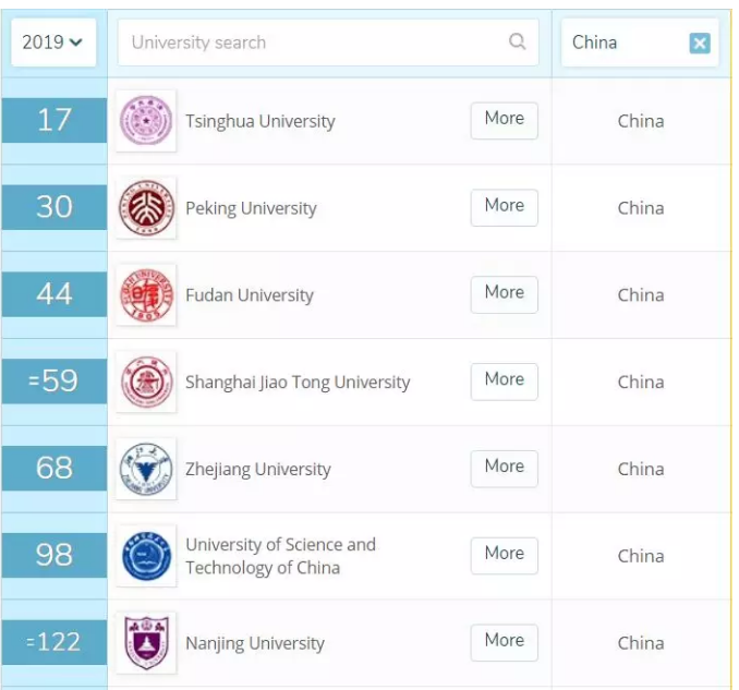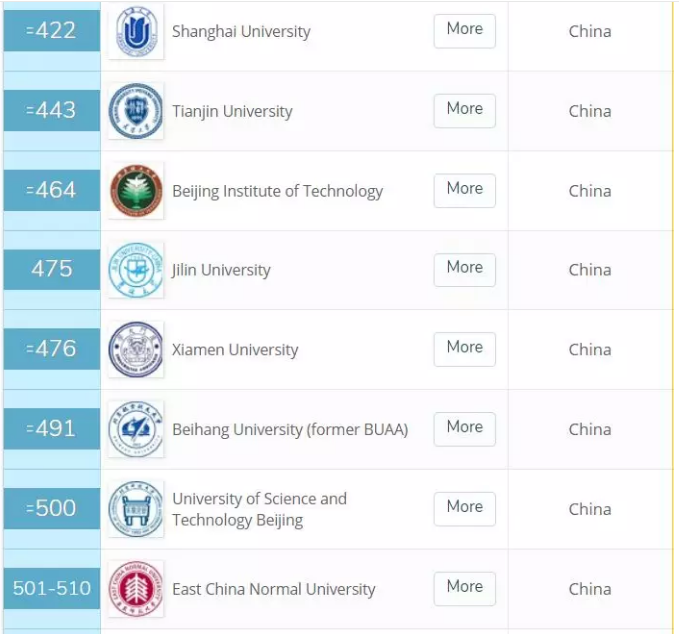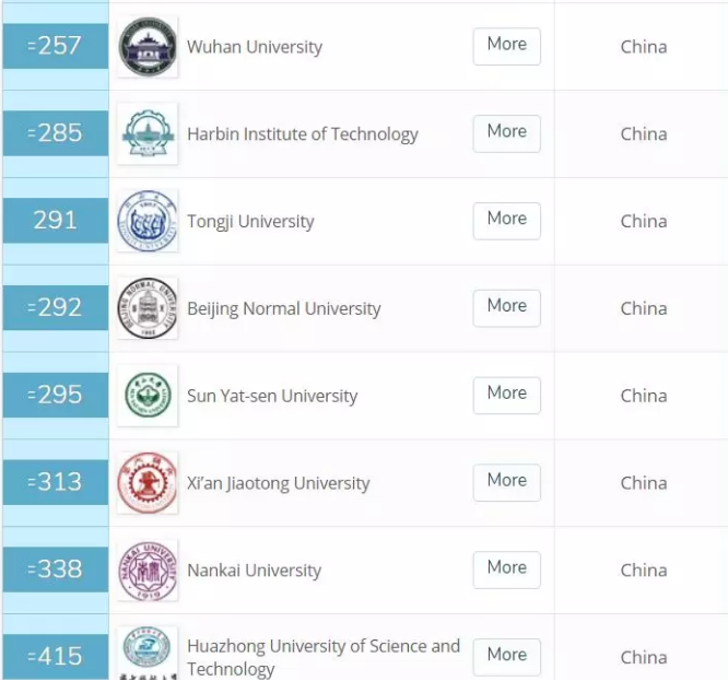 其中,清华大学、北京大学、复旦大学、上海交通大学、浙江大学 5 所大学排名在奥克兰大学之前,中国科技大紧随奥大之后;奥塔哥大学、维多利亚大学、坎特伯雷大学的排名位于南京大学和武汉大学之间;怀卡托大学排名稍次于武汉大学;林肯大学和梅西大学位于南开大学之前;奥克兰理工大学与北京理工大学位居同列。