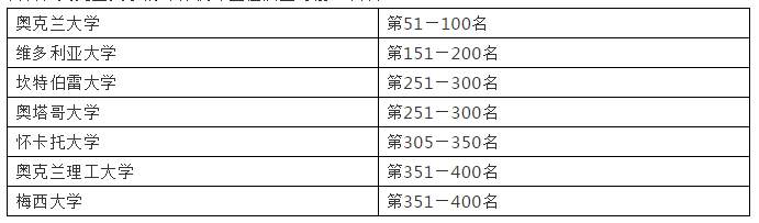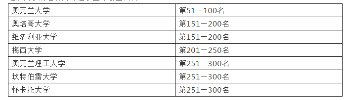 新西兰八所国立大学的排名分别是: