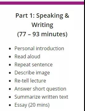 PTE分为三部分,分别为口语+写作(合并考)、阅读、听力。阅读和听力跟雅思考试大同小异,也不是咱们国内考生的难点,就不在这多说了,下面重点讲一下第一部分的口语和写作。