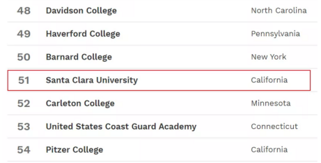 得益于较少的人数和小班教学,Santa Clara University的本科教学质量能得到一定的保障,被U.S.NEWS评为全国第23位。