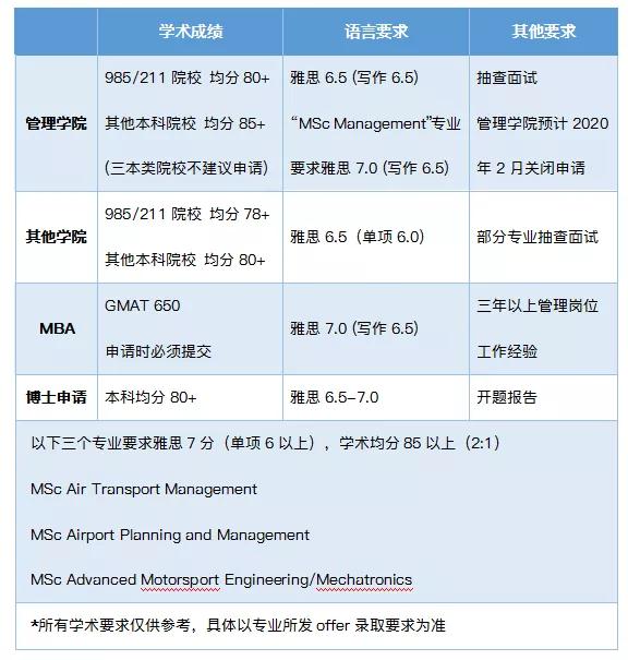 我们一起来看看克兰菲尔德大学2020年的录取要求。