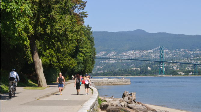 斯坦利公园临近温哥华的市中心。这片常青绿洲是温哥华第一个公园,占地约 1,000 英亩, 并被列入全球十大最佳公共空间之一 。