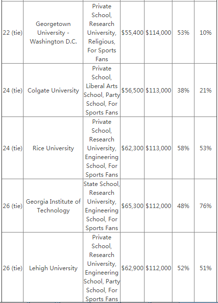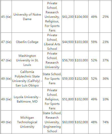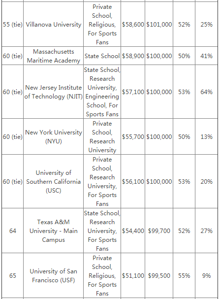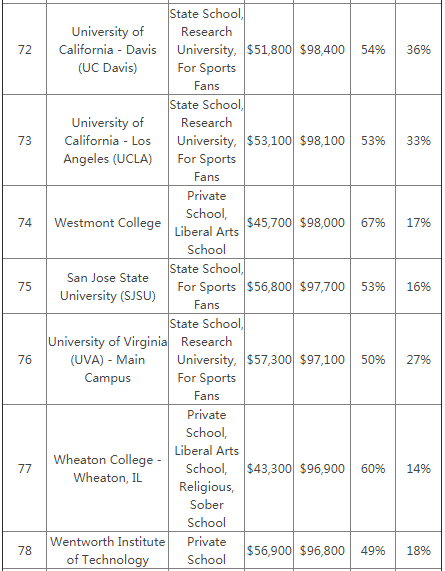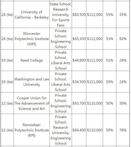 无论是公立大学还是私立大学,都培养出了众多高收入的毕业生,尤其是在看公务职位的时候,几乎所有的军事学院的毕业生都拥有较高的收入。而加州大学伯克利分析以及加州理工大学的毕业生的平均薪资更是高了常青藤院校毕业生一等。查看↓↓↓PayScale毕业生院校薪资榜单↓↓↓