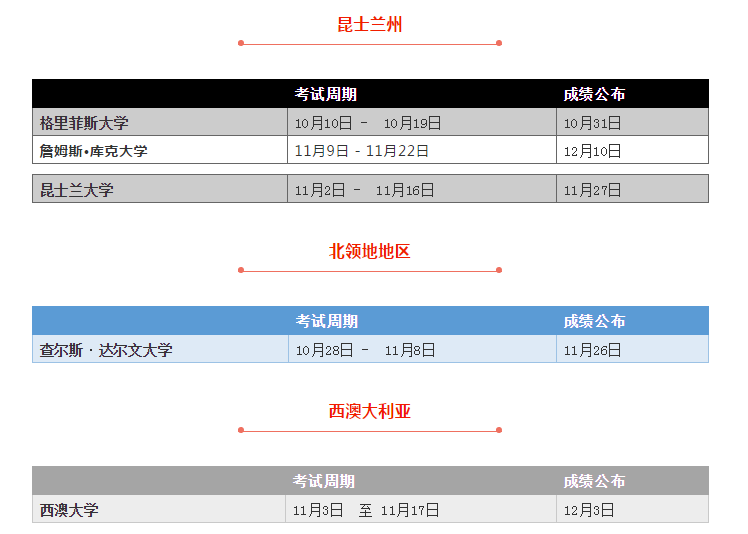 临近期末,给大家准备了各个地区学校的FINAL安排。