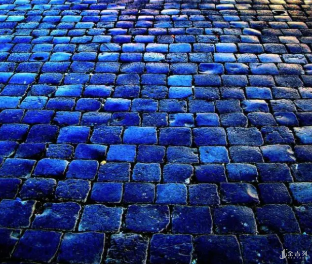 这条小巷的地面还铺满着 蓝色的鹅卵石,与墙面上夸张浓烈的壁画相映成趣。