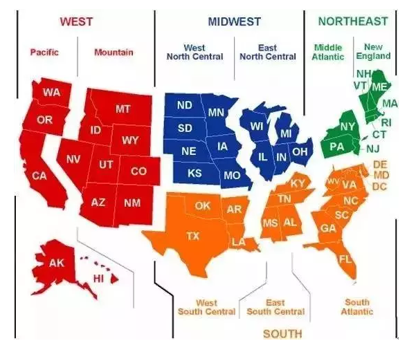 学校所在地区也许是大部分学生和家长选校时最看重的一项个人喜好因素,美国人口普查局将美国划分为9个大区,每个大区各有特色: