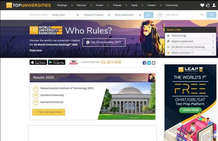 QS世界大学排名(QS Worl University Rankings)是由英国一家国际教育市场咨询公司Quacquarelli Symons所发表的年度世界大学排名。