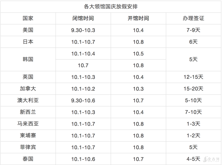 眼看着马上就是国庆了,不止我们要放假,全国各大使馆也要放假啦!