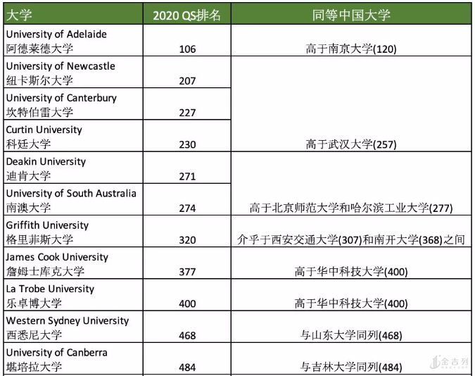 澳洲新西兰作为传统的英语国家,教育水平位居全球前列。在澳洲除了著名的”八大”, 其他大学的排名也都是非常不错,有些大学的专业排名更是名列前茅。我们不妨看看这些大学的排名与同等排名的中国大学对比,你就能得到一个澳洲新西兰版的重点本科大学入学选择。