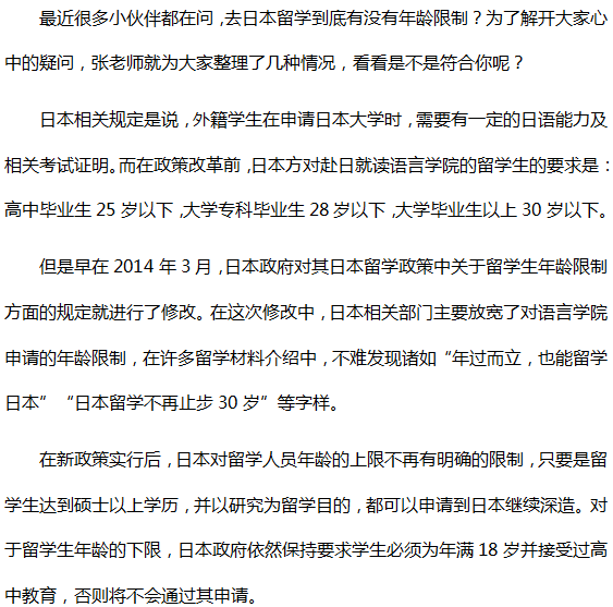 最近很多小伙伴都在问,去日本留学到底有没有年龄限制?为了解开大家心中的疑问,张老师就为大家整理了几种情况,看看是不是符合你呢?